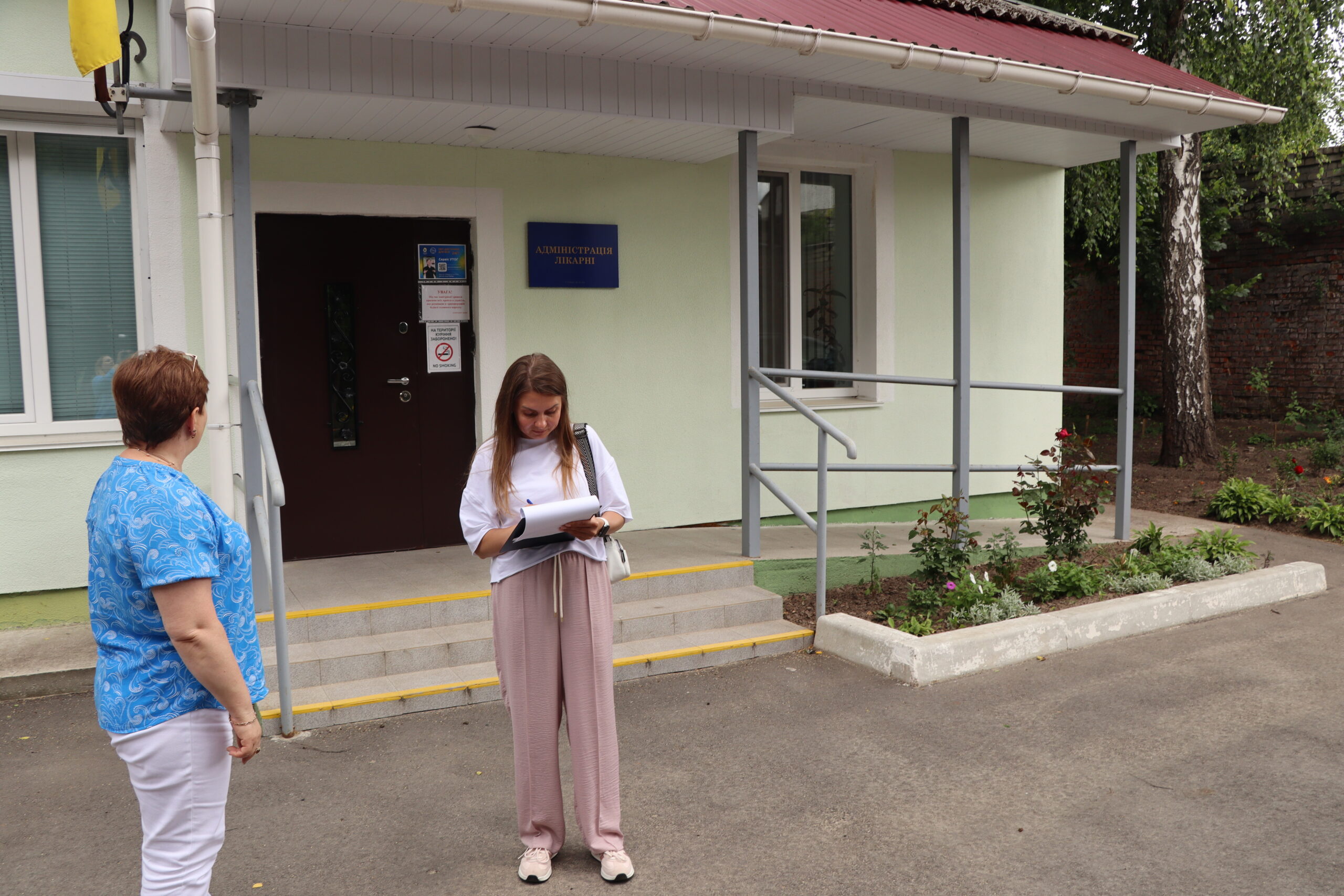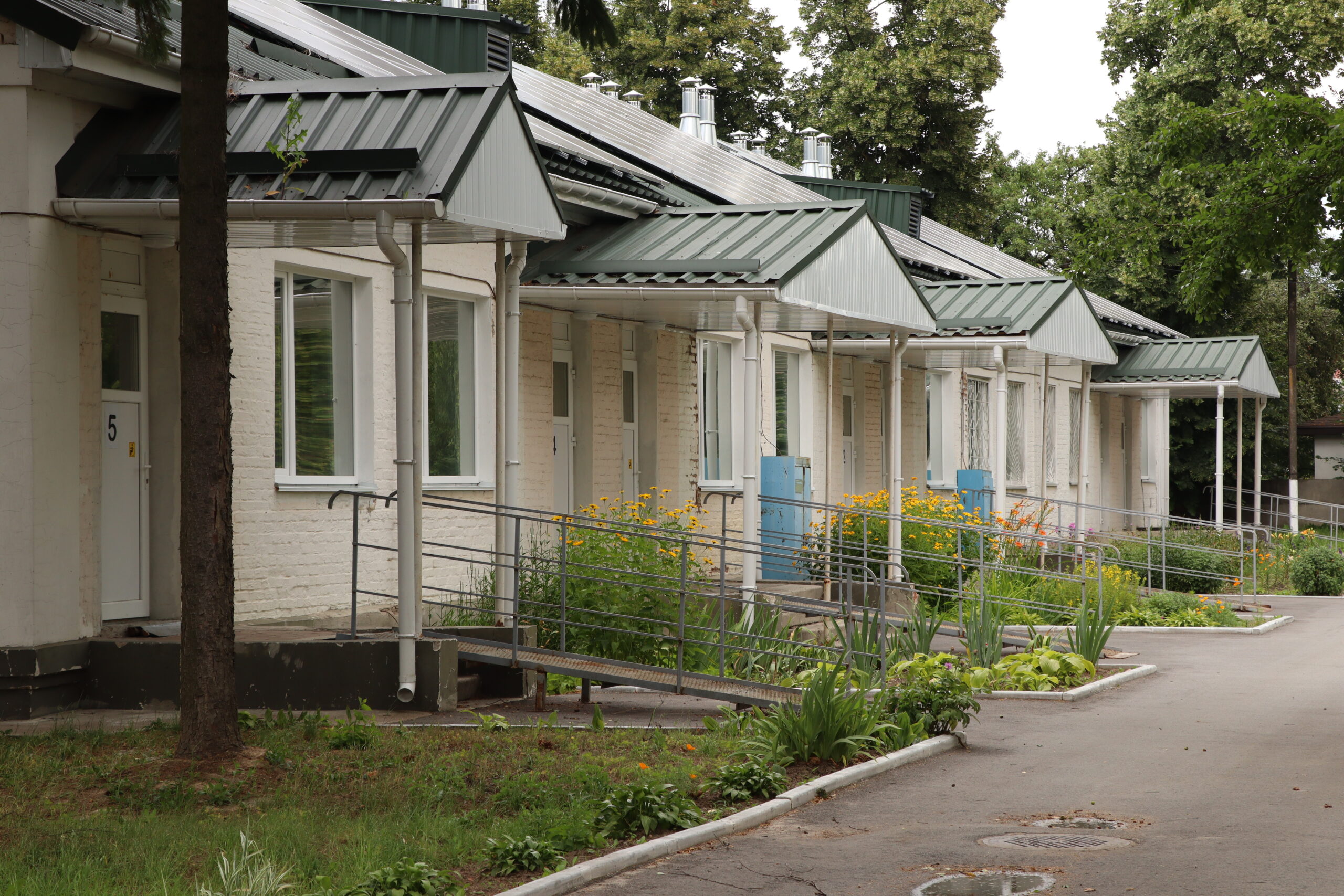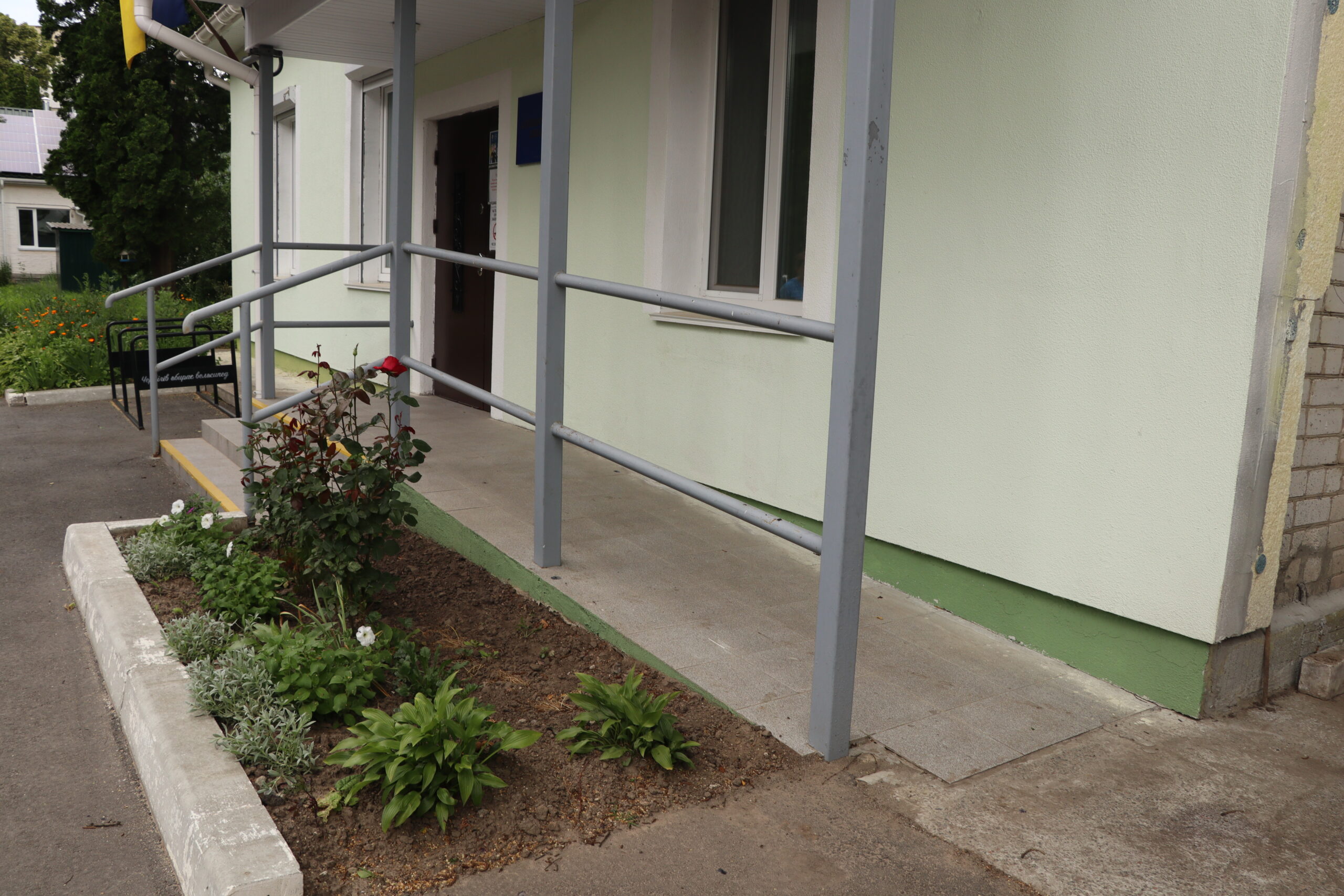 Уся територія закладу має багато озеленення, є зони тихого відпочинку та місця для усамітнення. Тротуари на території медичного закладу без вибоїн. Є можливість розминутися кільком людям на кріслах колісник або з дитячими візками.