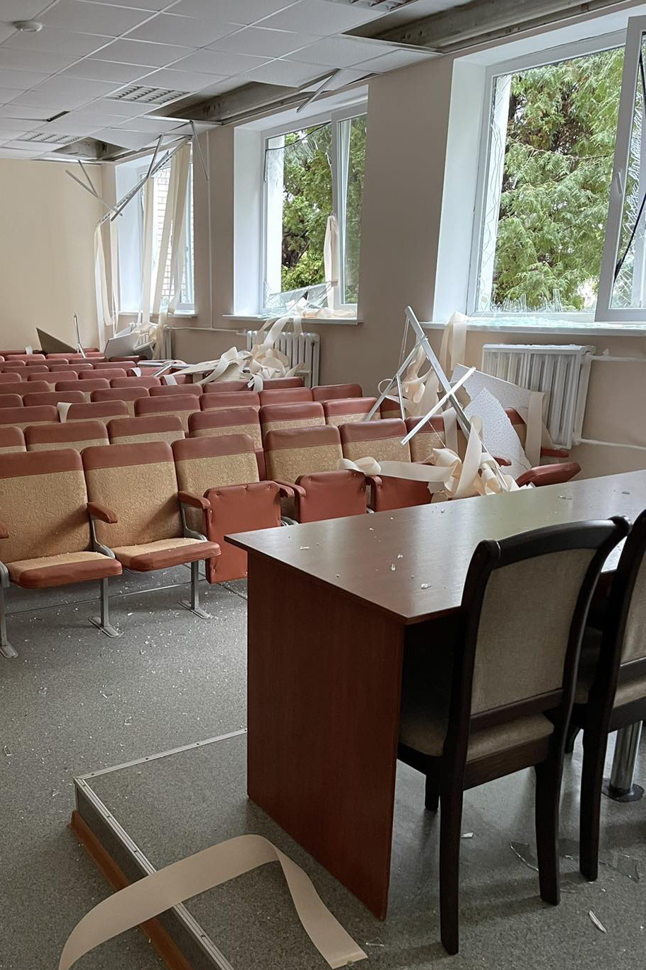 Загалом вибито або пошкоджено близько 208 вікон, 70 дверей, пошкоджено покрівлі, внутрішнє оздоблення та інженерні мережі.