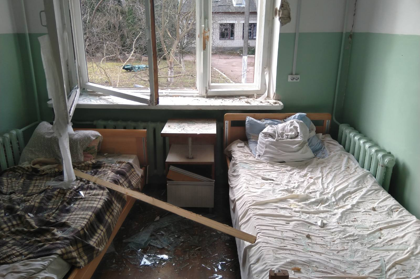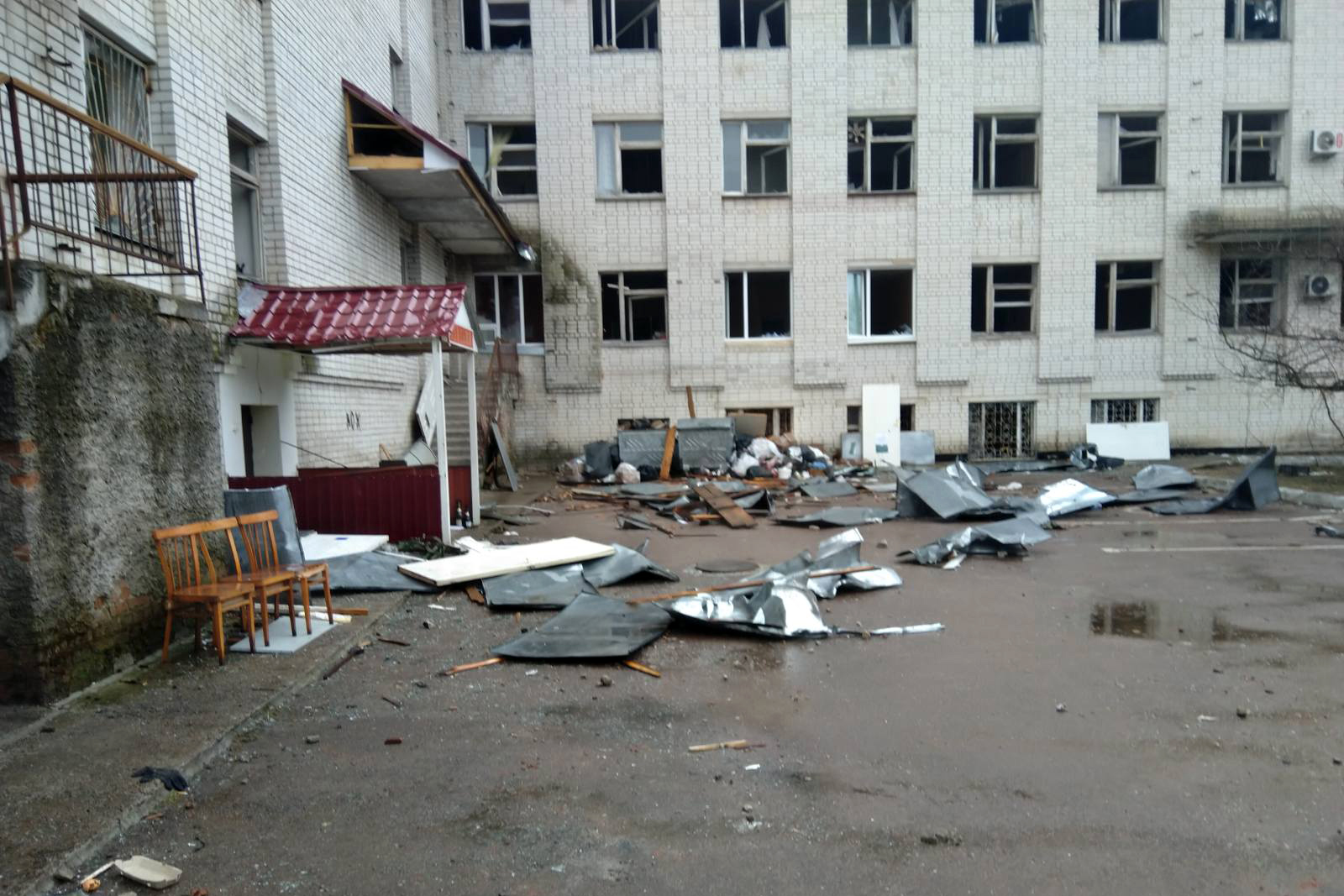На території лікарні, що включає 10 корпусів і 27 будівель, постраждала переважна більшість споруд, а найбільше — інфекційне, неврологічне та лабораторне відділення, а також поліклініка.