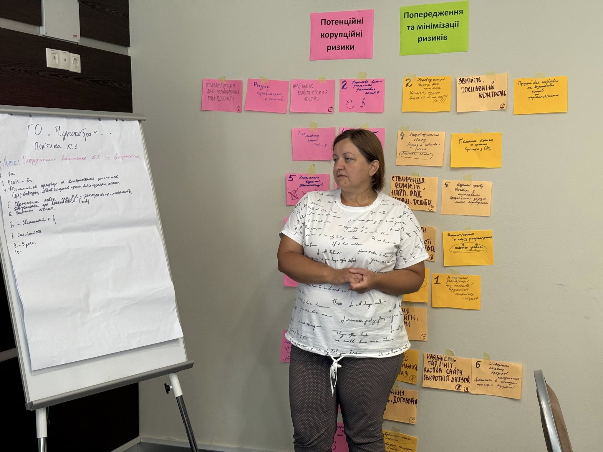 Тренерки — Tetiana Romanova та Юлія Зальцберг — розповіли про міжнародні антикорупційні стандарти. Вони напрацювали з учасниками системний підхід до боротьби з корупцією. Допомогли розробити індивідуальні антикорупційні плани дій.