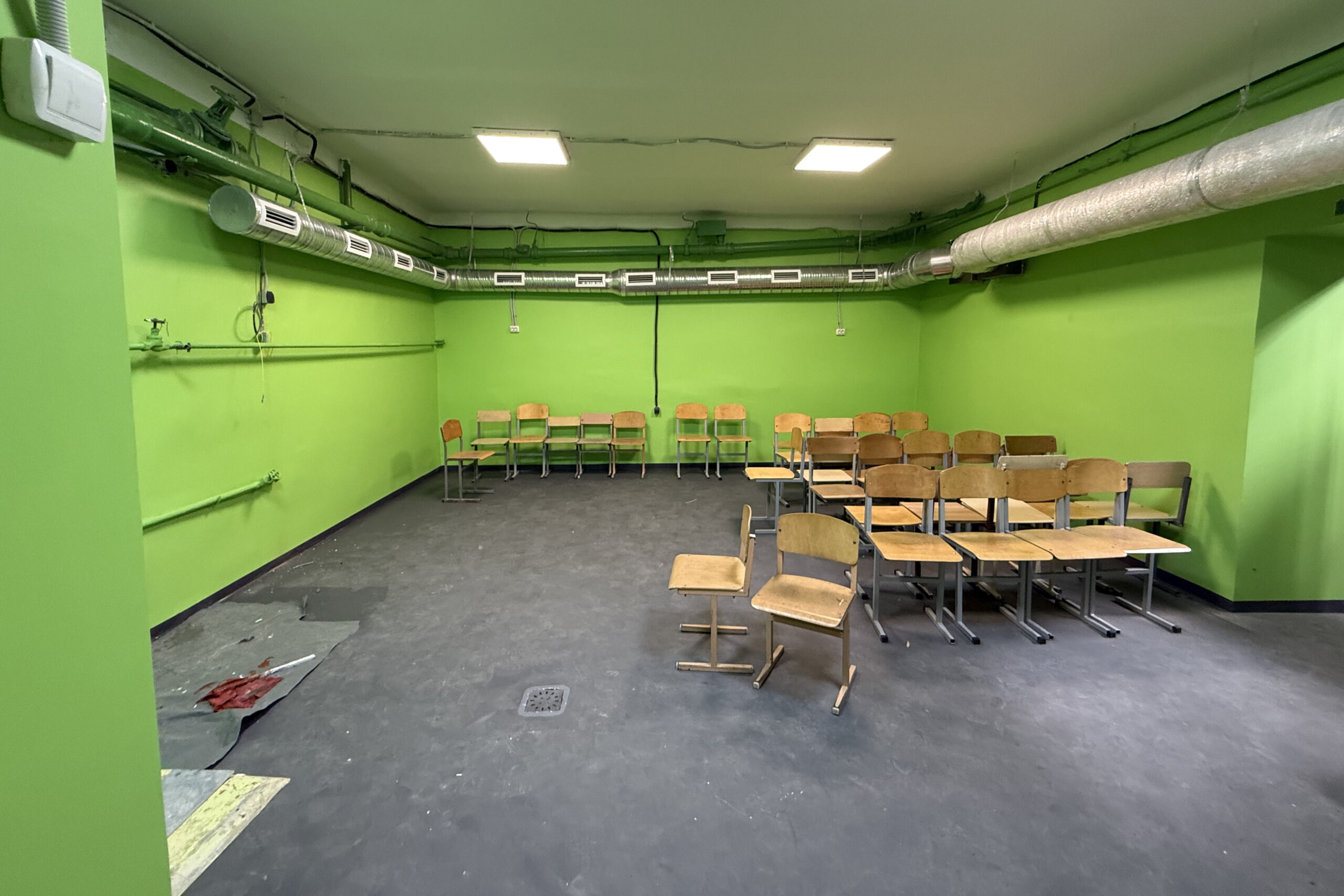 В укриття ведуть дві сходові клітини. Якщо одна має поручень і справа, і зліва, то інша — лише з одного боку.