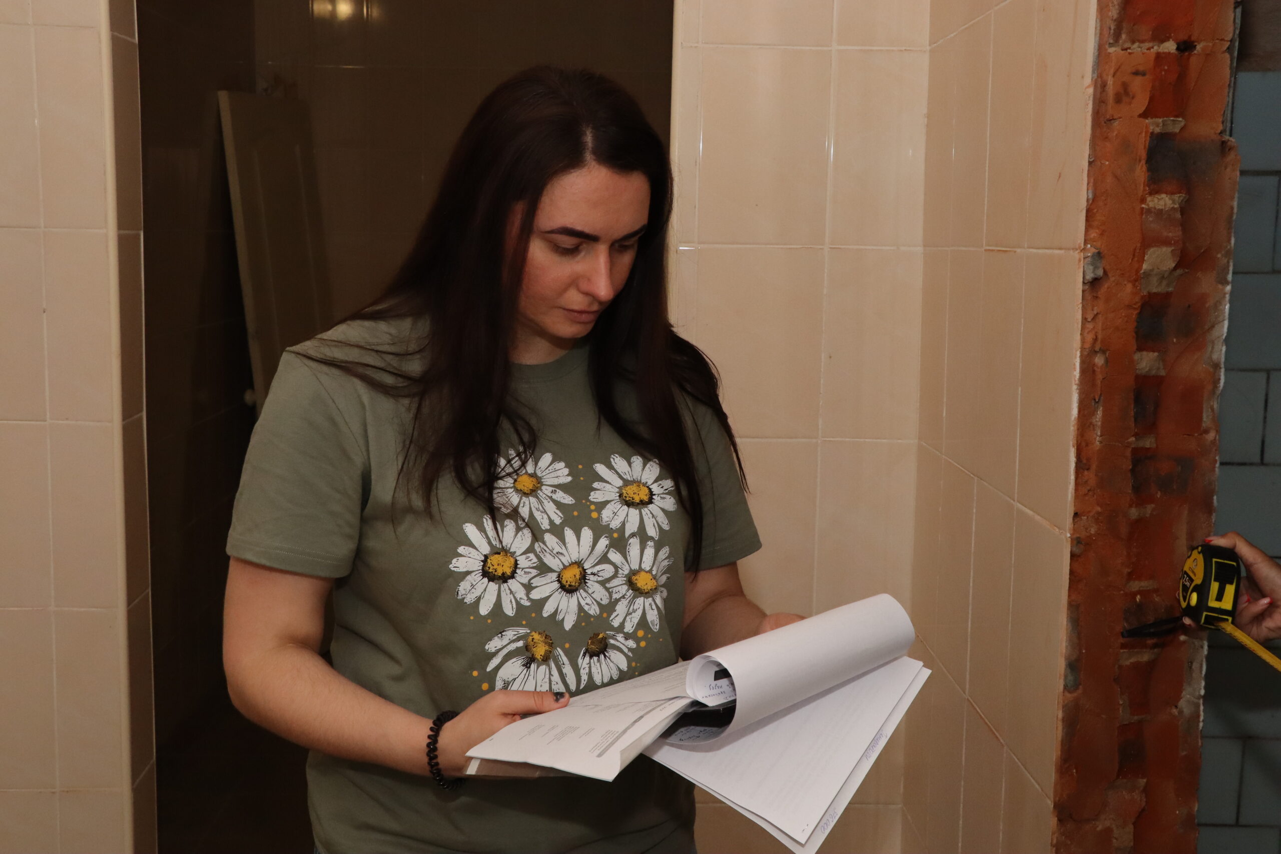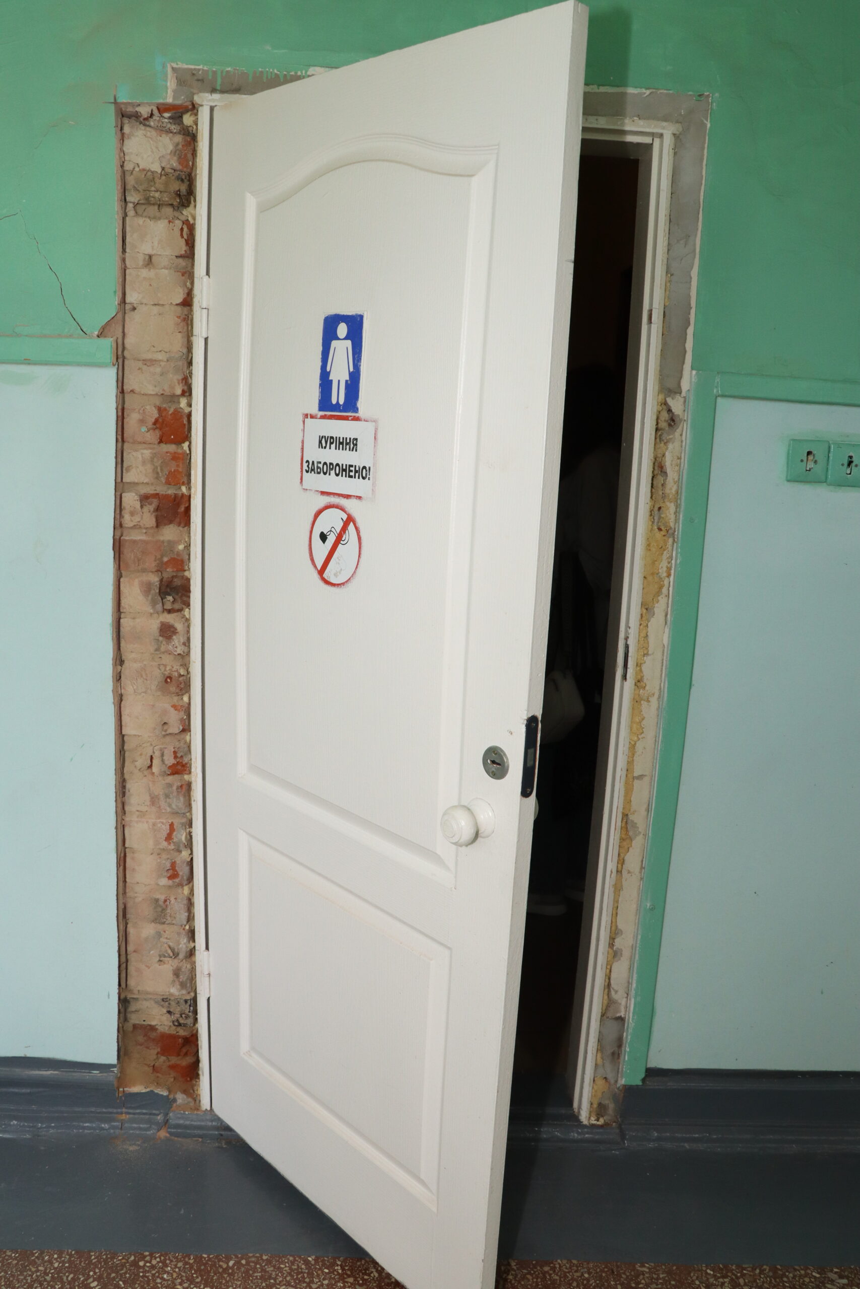 Моніторингова команда громадської організації “Агенції міських ініціатив” побачила, що в приміщенні триває підготовка до облаштування інклюзивної вбиральні.