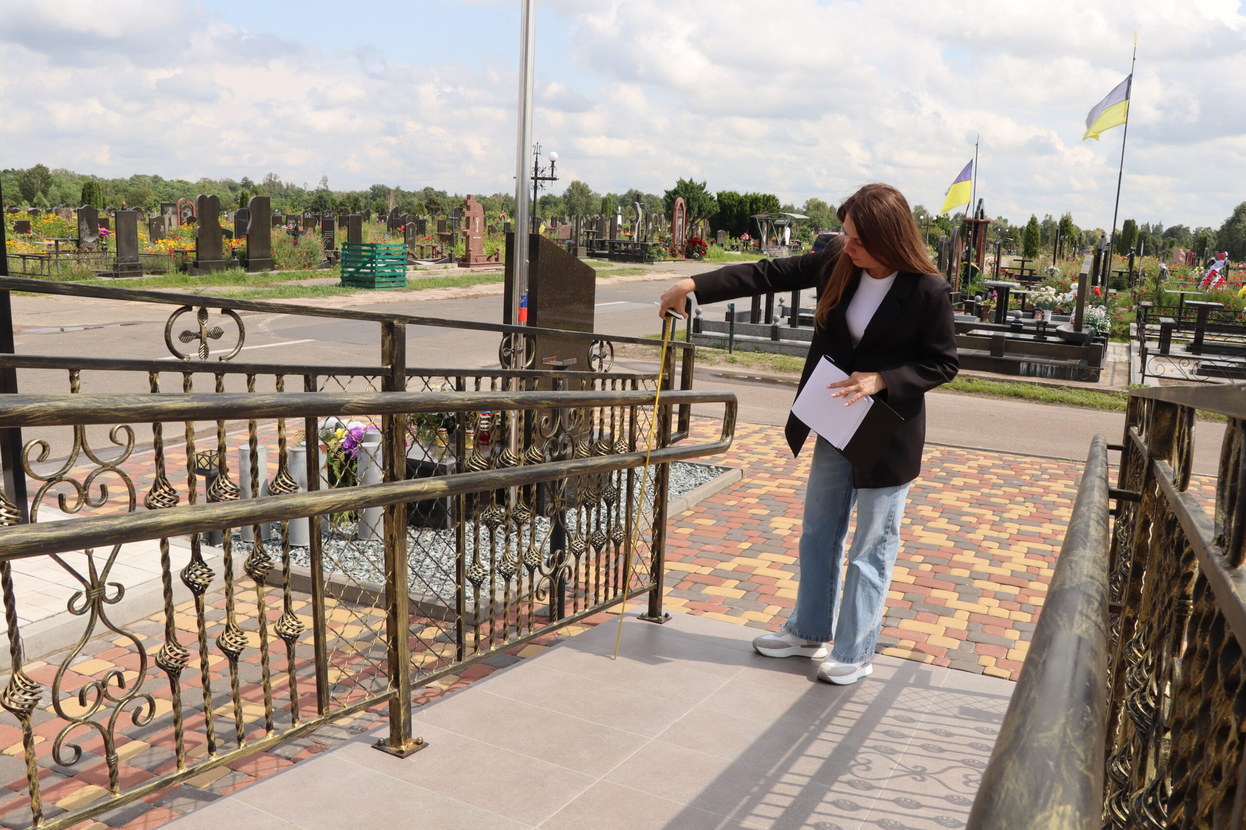 ✅На вході у капличку встановлено пандус із поручнями (висота — 66 см і 86 см, ширина — 153 см), що відповідає вимогам безбар’єрності.