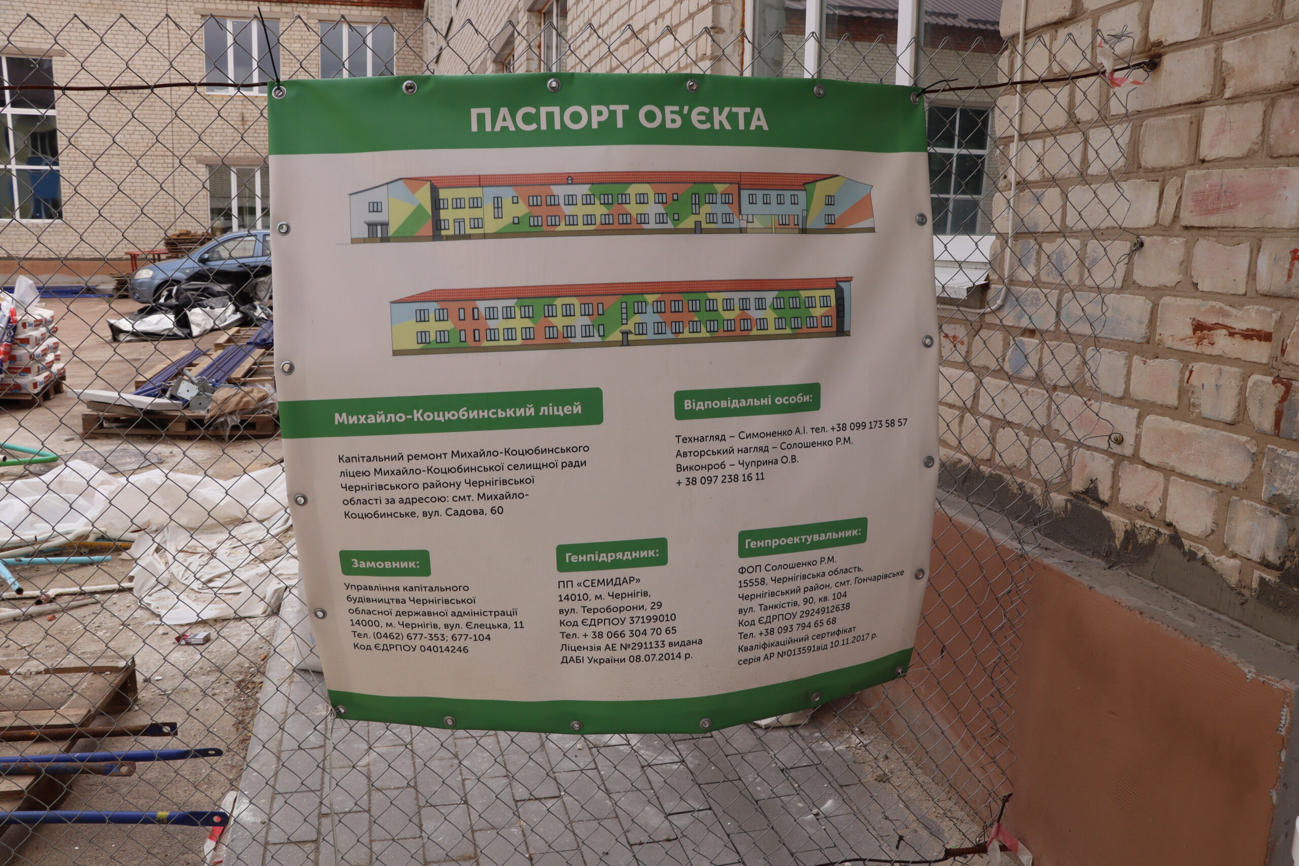 «Керівництво ліцею співпрацює у напрямку відбудови як з органами влади, так і з міжнародними донорами. У результаті такої співпраці було повністю відновлено вікна та двері. Відбудова зруйнованої частини будівлі та фасад на завершальному етапі ремонту. Класні кімнати готуються до того, щоб запускати дітей. Єдине, чого бракує закладу для повноцінного запуску очної форми — укриття», — розказала Анна Косовець, заступниця директора з навчально-виховної роботи Михайло-Коцюбинського ліцею.