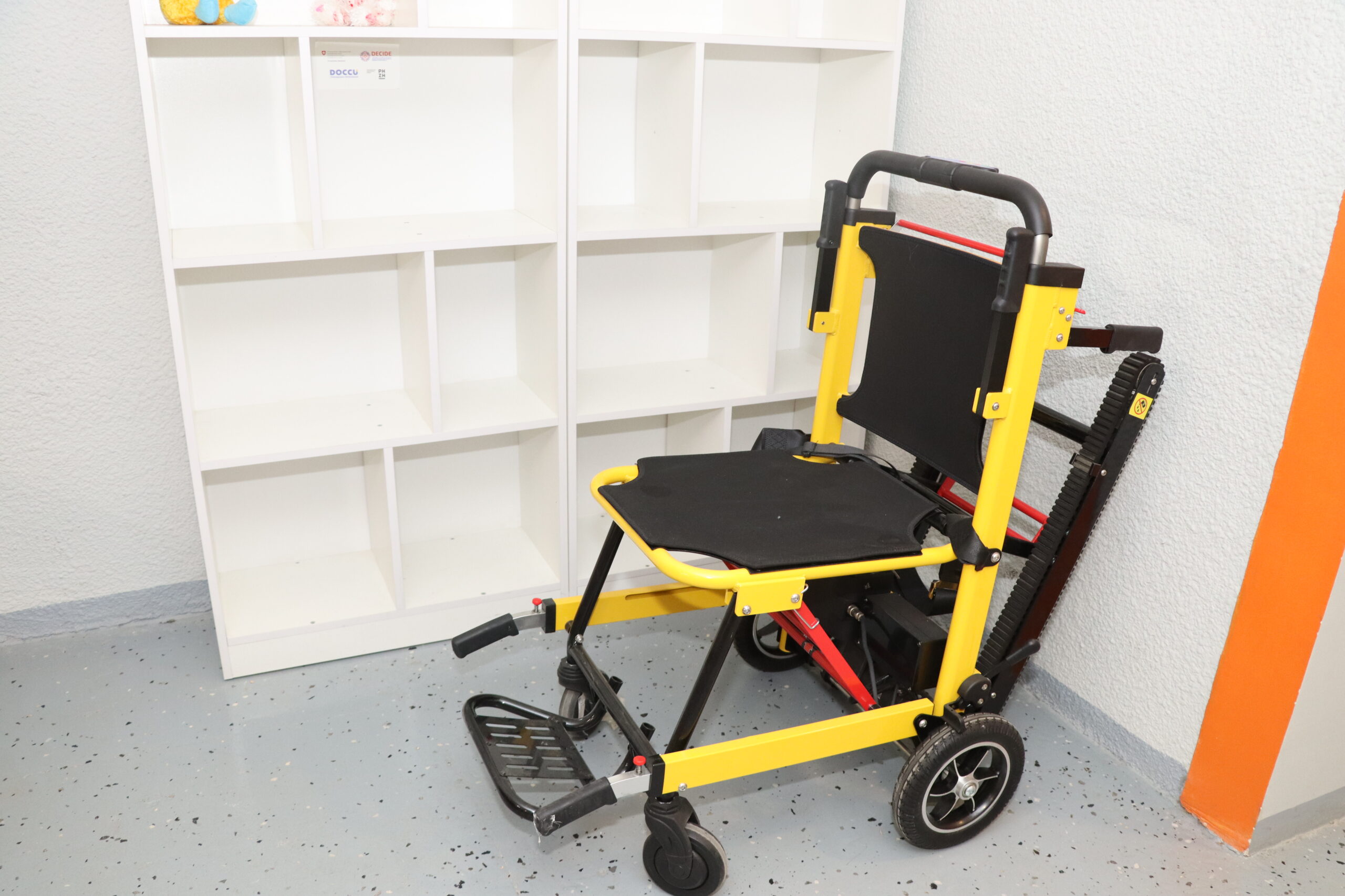 У підвалі передбачений електричний сходовий підіймач із вбудованим кріслом. Це — мобільний пристрій для забезпечення безпеки переміщення маломобільних людей. Він оснащений гусеничним приводом і вбудованим кріслом. На ньому можна транспортувати на сходинках маломобільних людей.