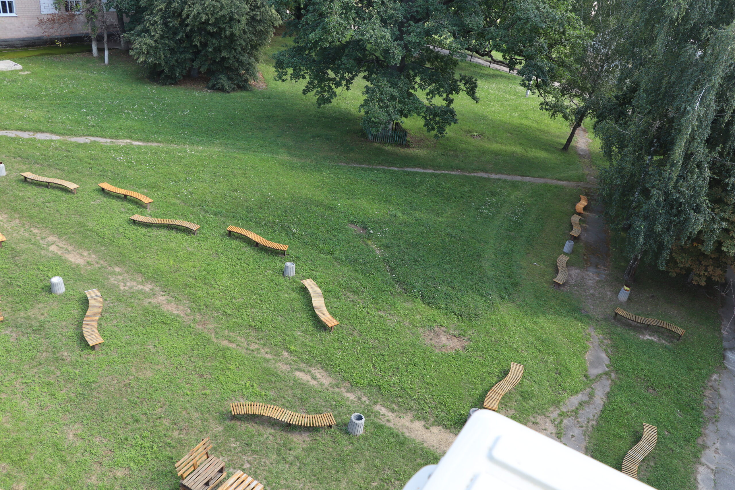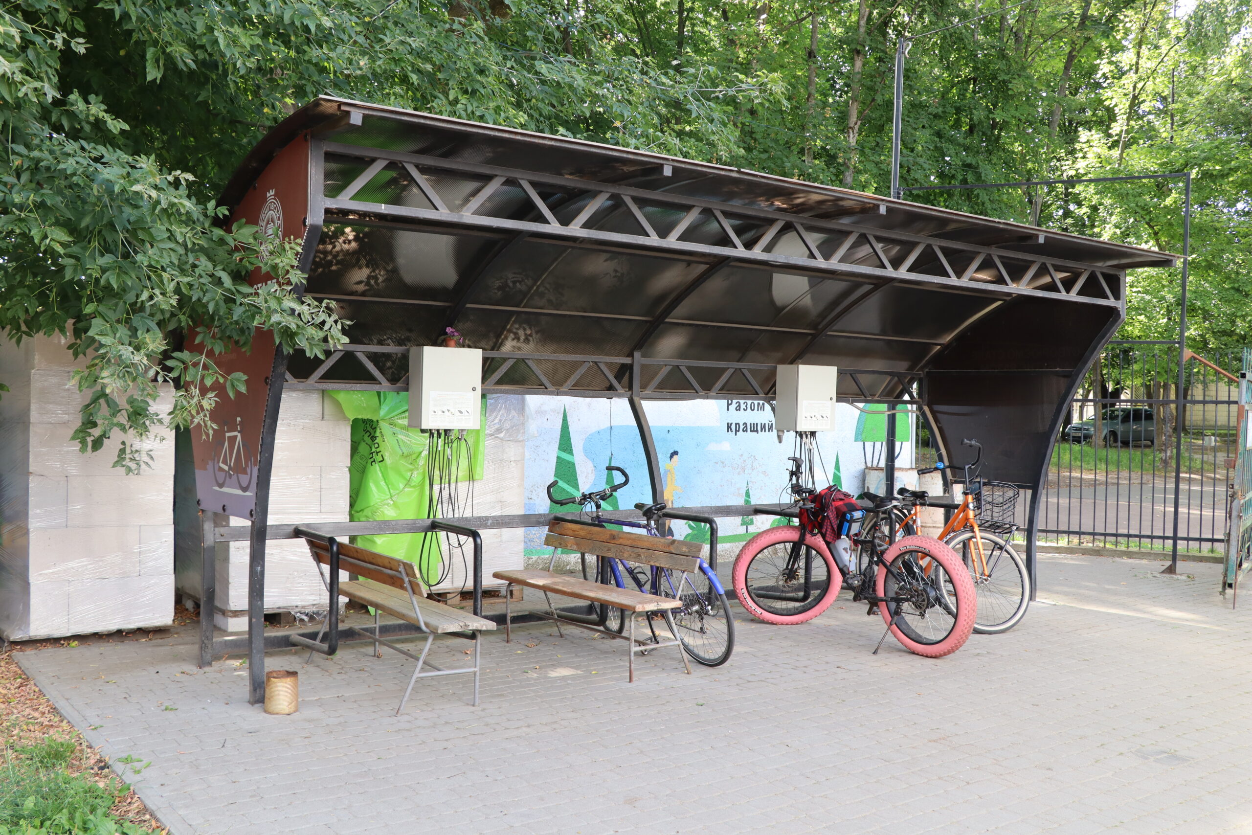 ✅ Велика, рівна, майже без вибоїн. Є місця для відпочинку у затінку. Дві велопарковки, одна з них із зарядкою для електросамокатів та електровелосипедів. Передбачена парковка для людей з інвалідністю.