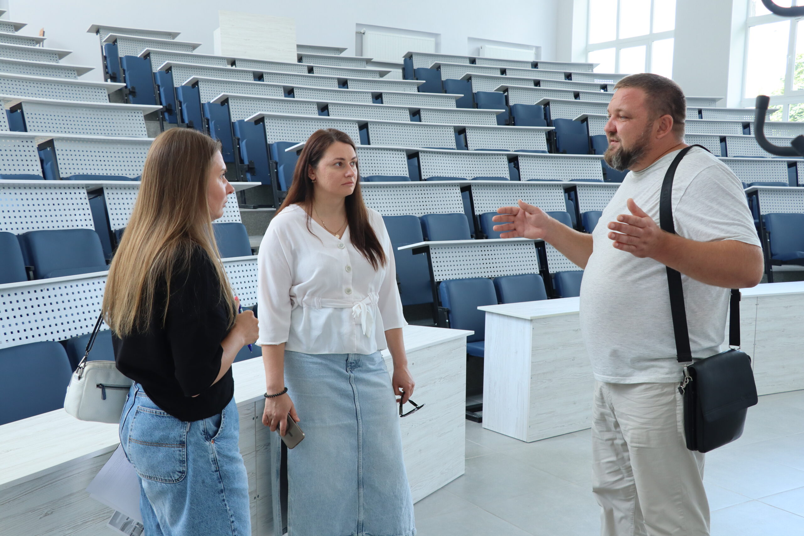 «Агенція міських ініціатив» завітала з моніторинговим візитом відбудови до Національного університету «Чернігівська політехніка». Екскурсію команді Агенції провів провідний інженер з організації експлуатації та ремонту будівель і споруд Олександр Рисак.